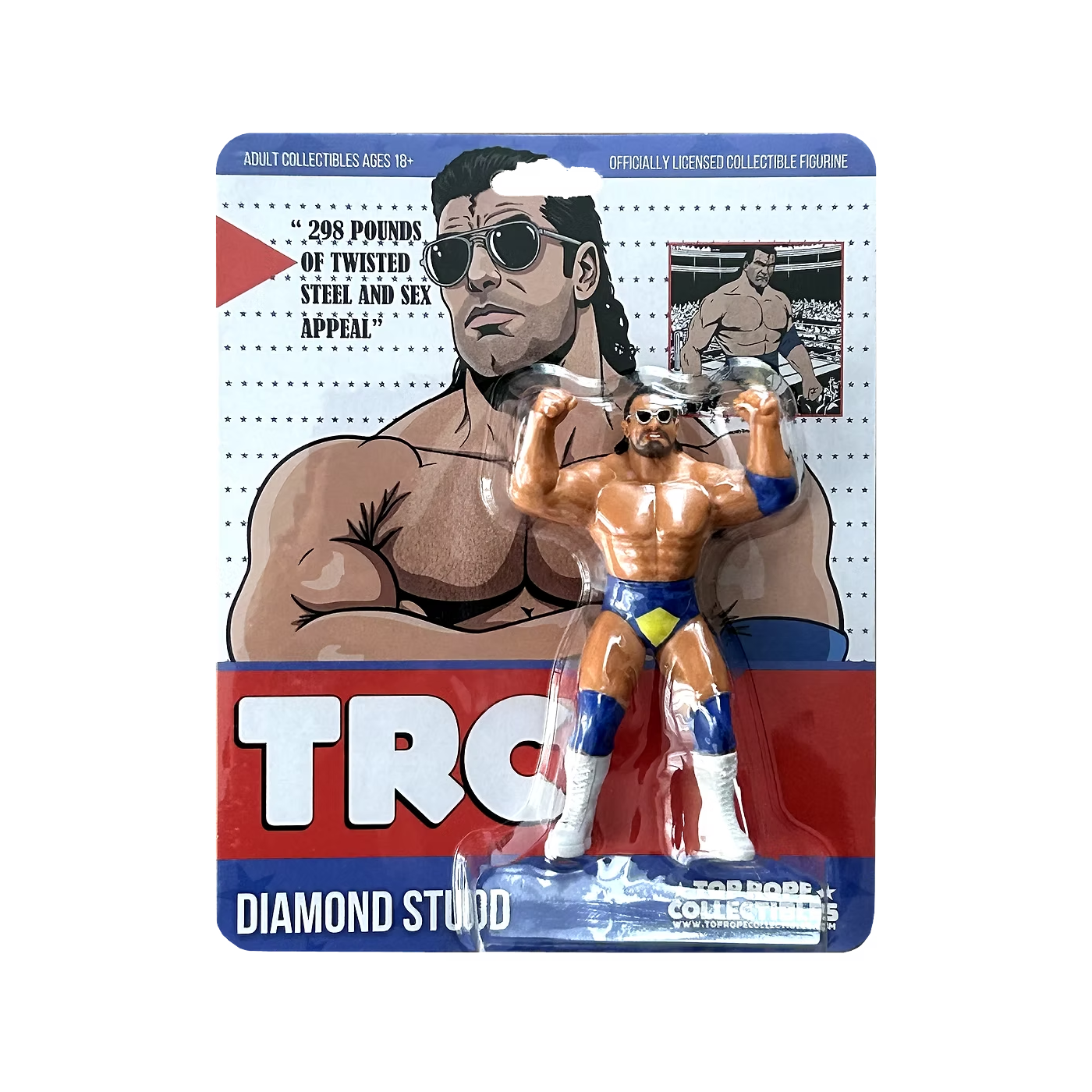 Designed in the authentic style of early ‘90s wrestling figures. Featuring an era-accurate sculpt, bold colors, and detailed craftsmanship, this figure captures the swagger and intensity of Diamond Studd. His cool, confident persona and signature style made him a standout in the ring, and now collectors can finally own the figure that was once missing from their collections. A perfect addition to any vintage-style lineup, this limited-edition figure won’t be available forever—get yours today!