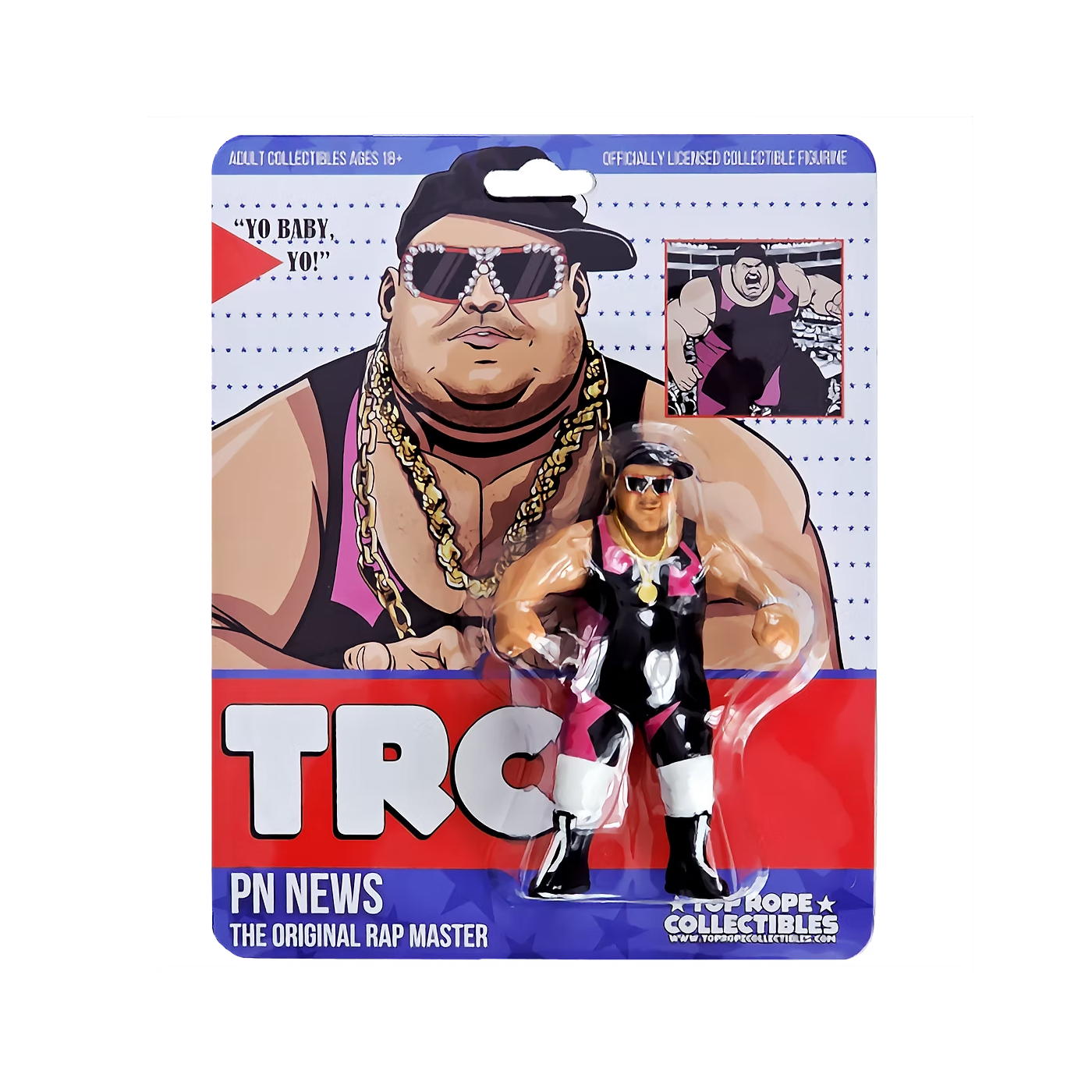 Designed in the authentic style of early ‘90s wrestling figures. Featuring an era-accurate sculpt, bold colors, and detailed craftsmanship, this figure captures the charisma and energy of P.N. News. His "Yo Baby, Yo Baby, Yo!" persona made him a fan favorite, and now collectors can finally own the figure that was once missing from their collections. A perfect addition to any vintage-style lineup, this limited-edition figure won’t be available forever—get yours today!