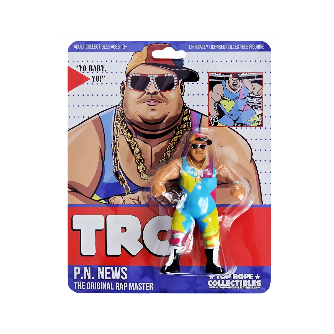 Designed in the authentic style of early ‘90s wrestling figures. Featuring an era-accurate sculpt, bold colors, and detailed craftsmanship, this figure captures the charisma and energy of P.N. News. His "Yo Baby, Yo Baby, Yo!" persona made him a fan favorite, and now collectors can finally own the figure that was once missing from their collections. A perfect addition to any vintage-style lineup, this limited-edition figure won’t be available forever—get yours today!